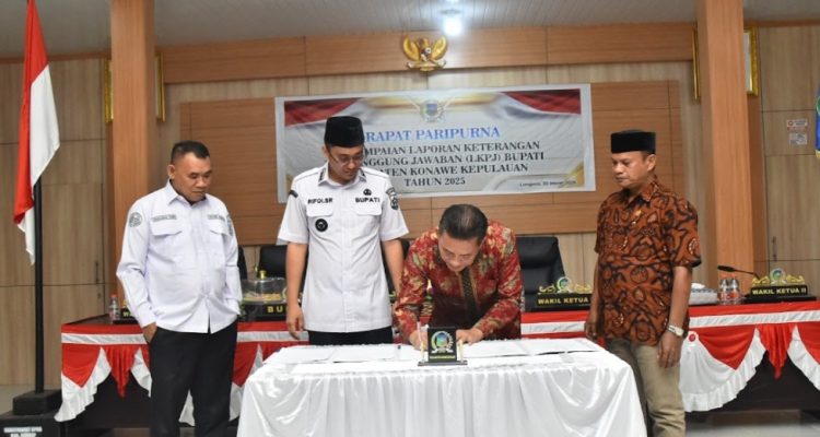 Bupati Konkep bersama Ketua DPRD Konkep saat menandatangani persetujuan LKPJ Tahun Anggaran