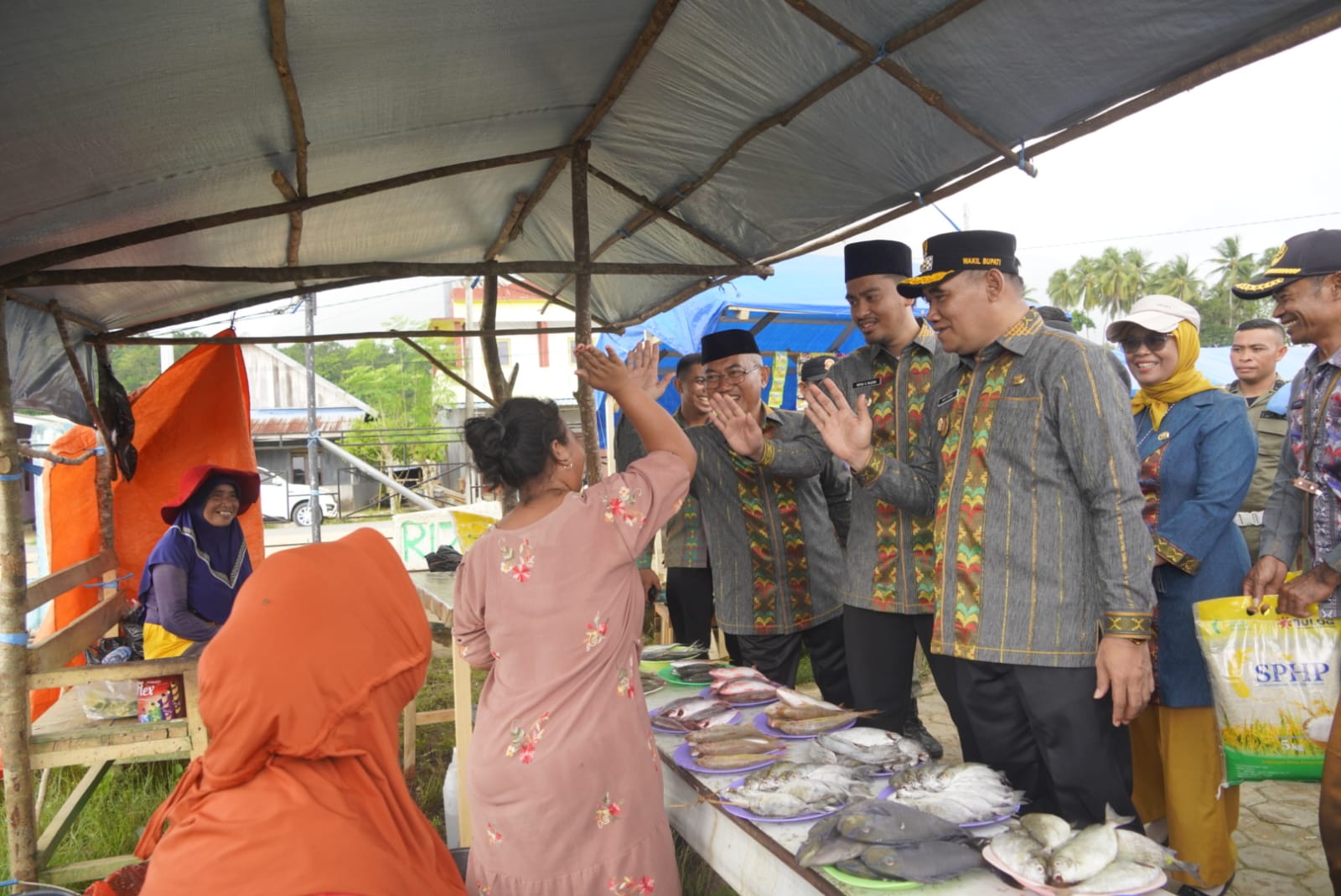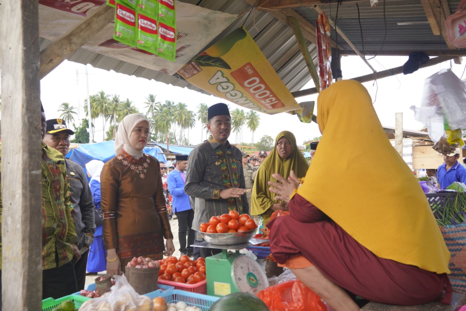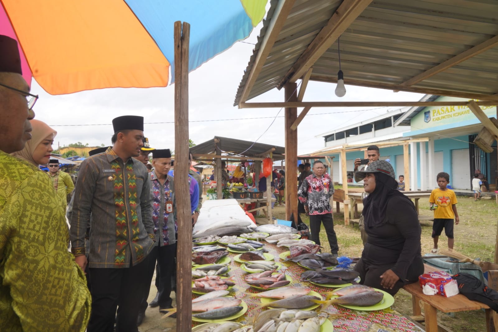 Bupati Konkep, Rifqi Saifullah Razak didampingi Wabup Konkep, Muhamad Farid saat meninjau pedagang pasar Kabupaten, Jum’at (2/5).