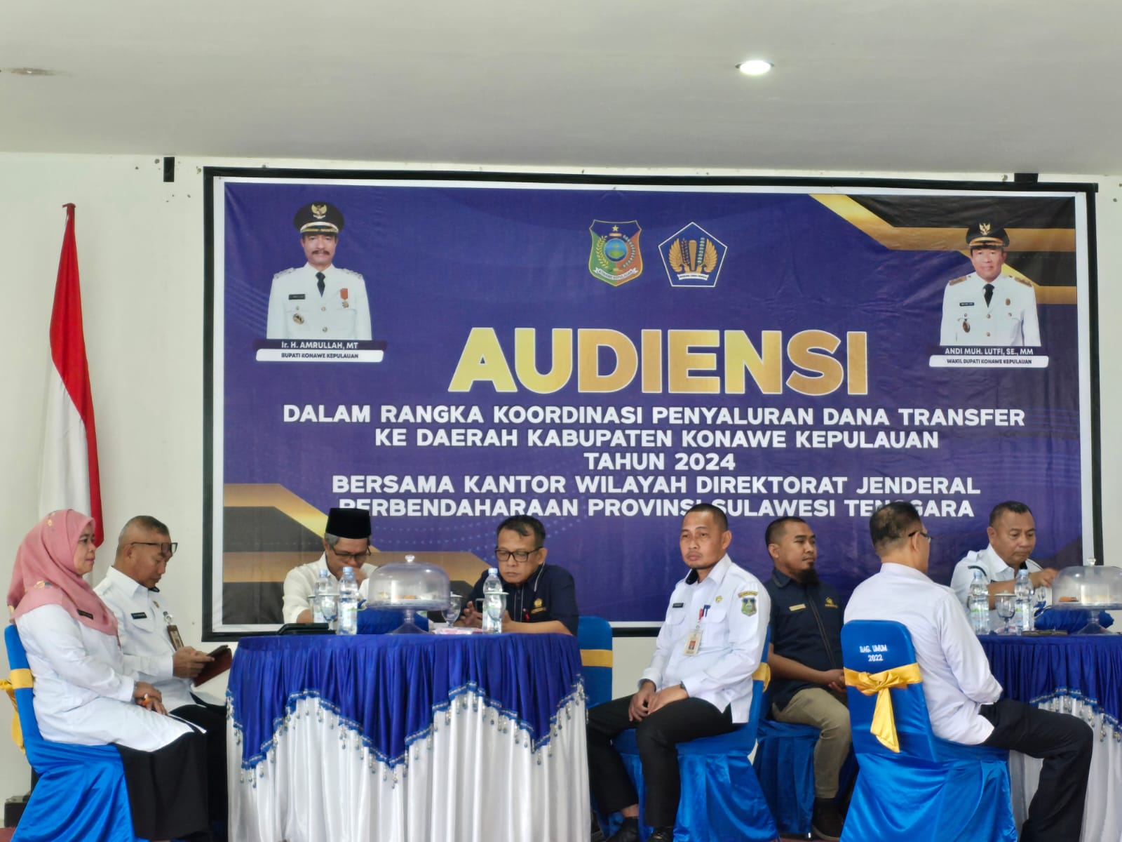 Langara, detikfokus.id – Kantor Wilayah Direktorat Jenderal Perbendaharaan (DJPb) Provinsi Sulawesi Tenggara (Sultra) melakukan Audiensi koordinasi penyaluran dana transfer di Kabupaten Konawe Kepulauan tahun 2024.