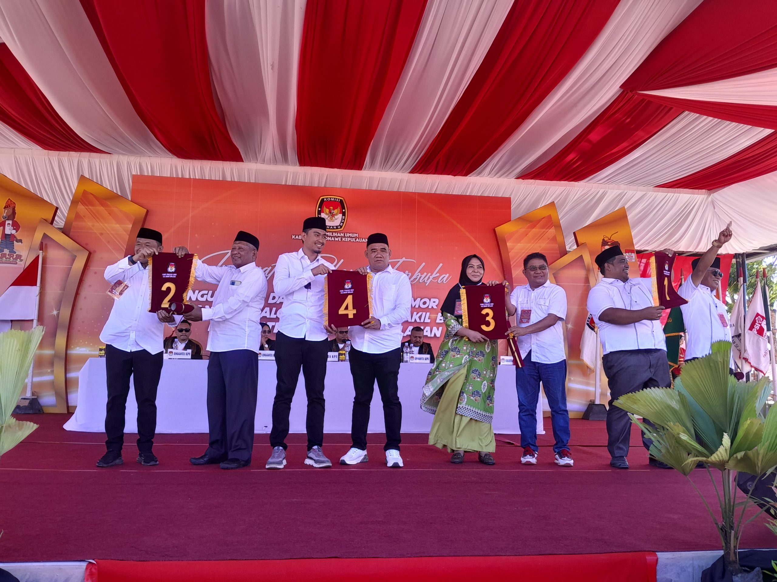 Berikut hasil pengundian nomor urut empat pasangan calon dalam Pilkada Kabupaten Konawe Kepulauan Tahun 2024.