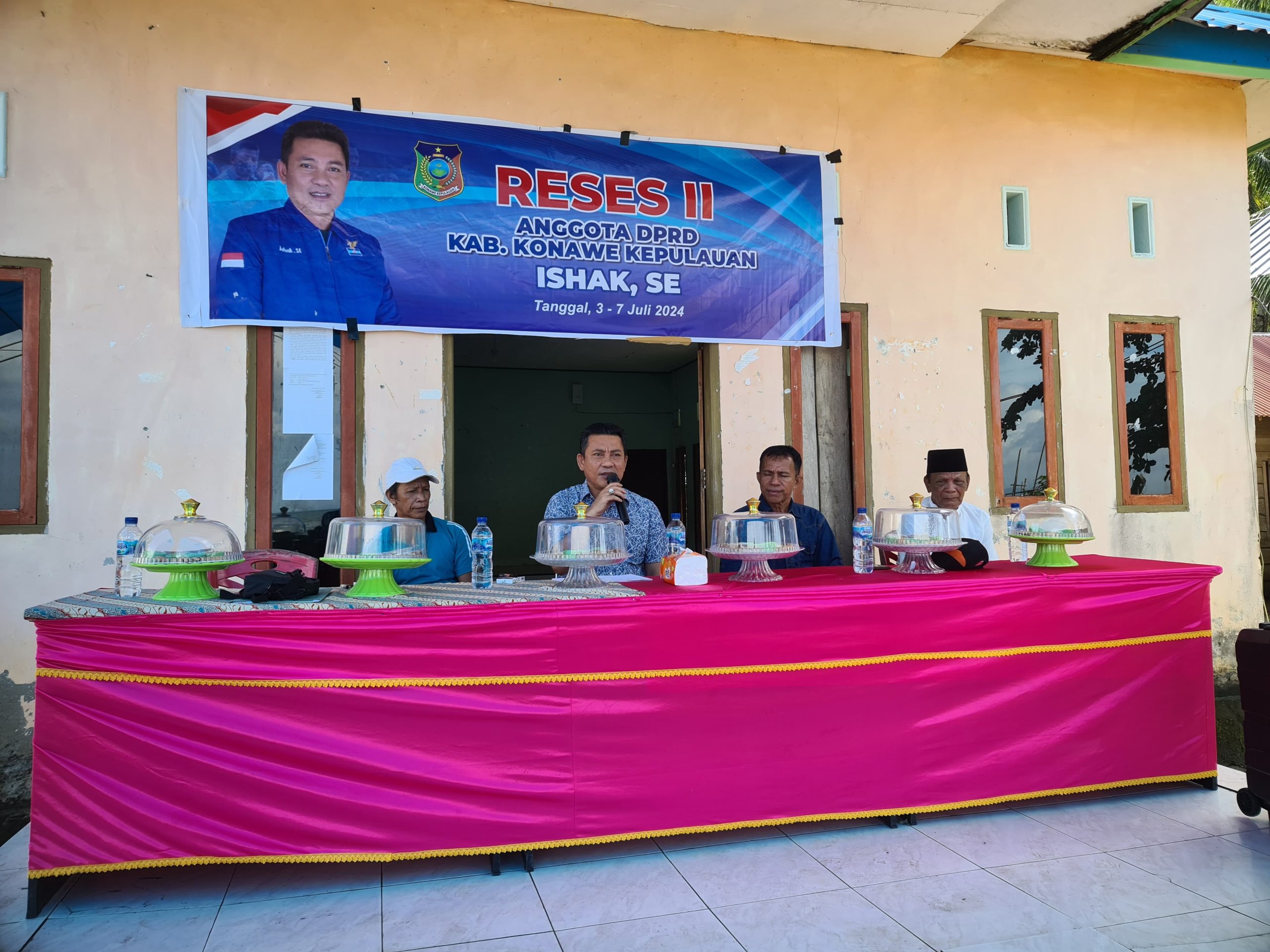 Ketua DPRD Konkep, Ishak saat reses di Kecamatan Wawonii Selatan. (Foto: Istimewah)