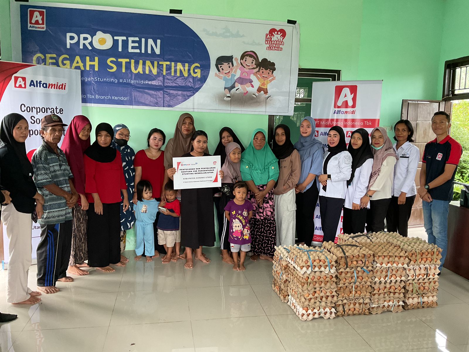 Alfamidi bekerja sama dengan Dinas Pengendalian Penduduk dan Keluarga Berencana (DPPKB) Kabupaten Konawe Utara, Camat Andowia, Ketua PKK Kecamatan Andowia, serta Petugas Penyuluh Gizi dari Keluarga Berencana Posyandu Andowia dalam mendukung upaya penanggulangan stunting di daerah tersebut.