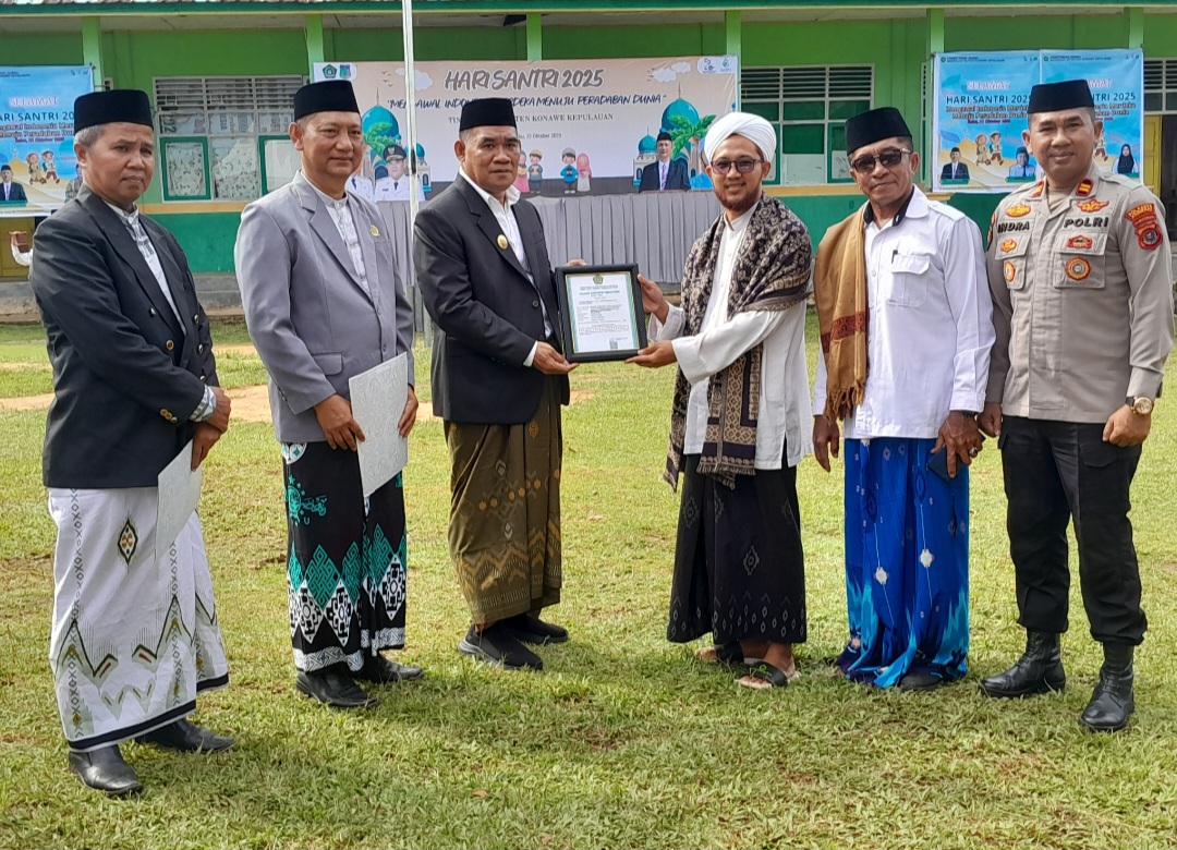Penyerahan Izin Operasional Pondok Pesantren Nadhlatul Wathan Wawonii oleh Wakil Bupati Konkep, Muhammad Farid SE kepada Ketua Yayasan NW Wawonii, Tg Abdul Khlaiq Al-Yamani QH SPdI.