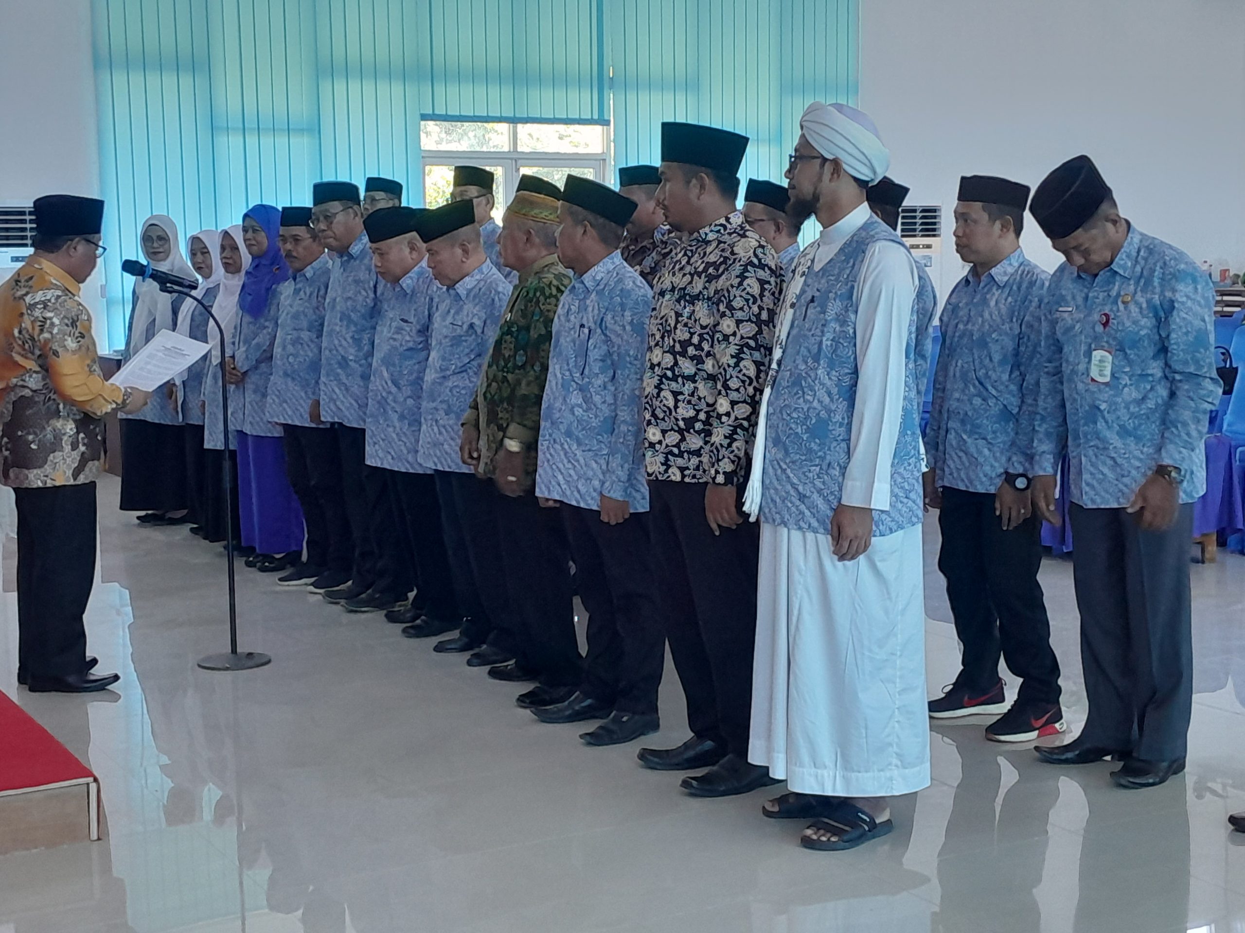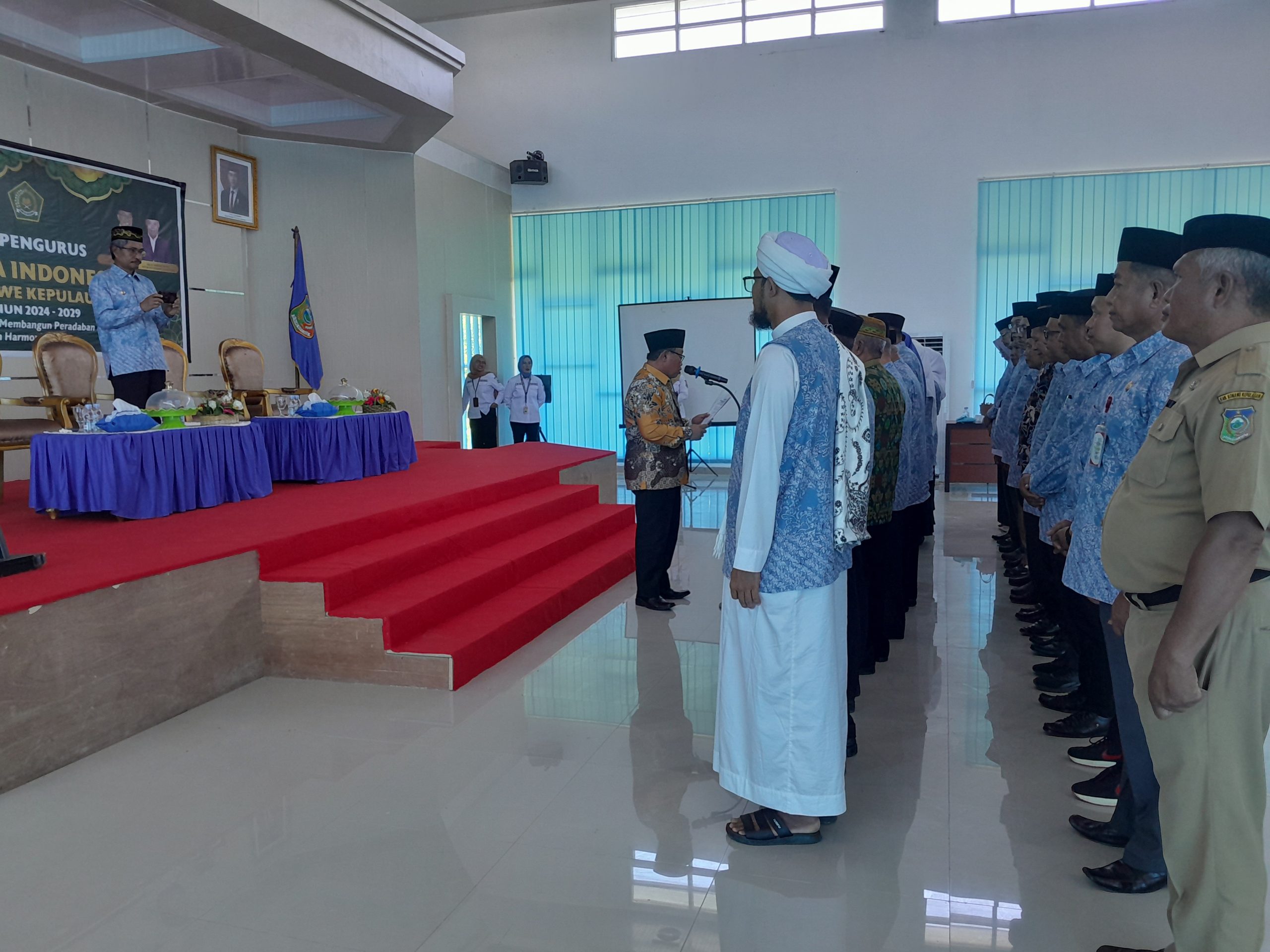 Suasana pengukuhan pengurus MUI Masa Khidmat Tahun 2024-2029 oleh Ketua MUI Sultra, Drs KH Mursyidin di Aula Kantor Bupati Konkep, Selasa (7/2).